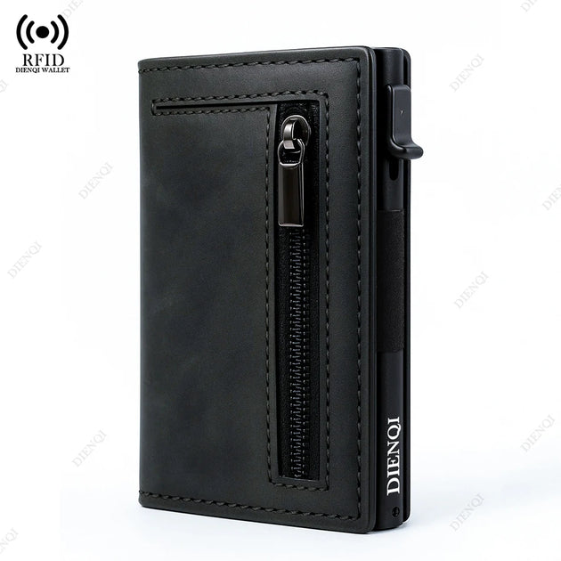 Effortless Access RFID Blocking Zippered Coins Pocket & Magnetic Closure Wallet