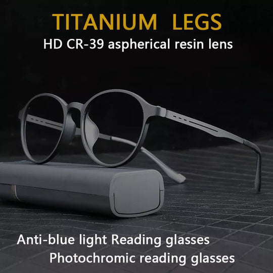 Titanium Anti Blue Light / Photochromic Retro Reading Glasses