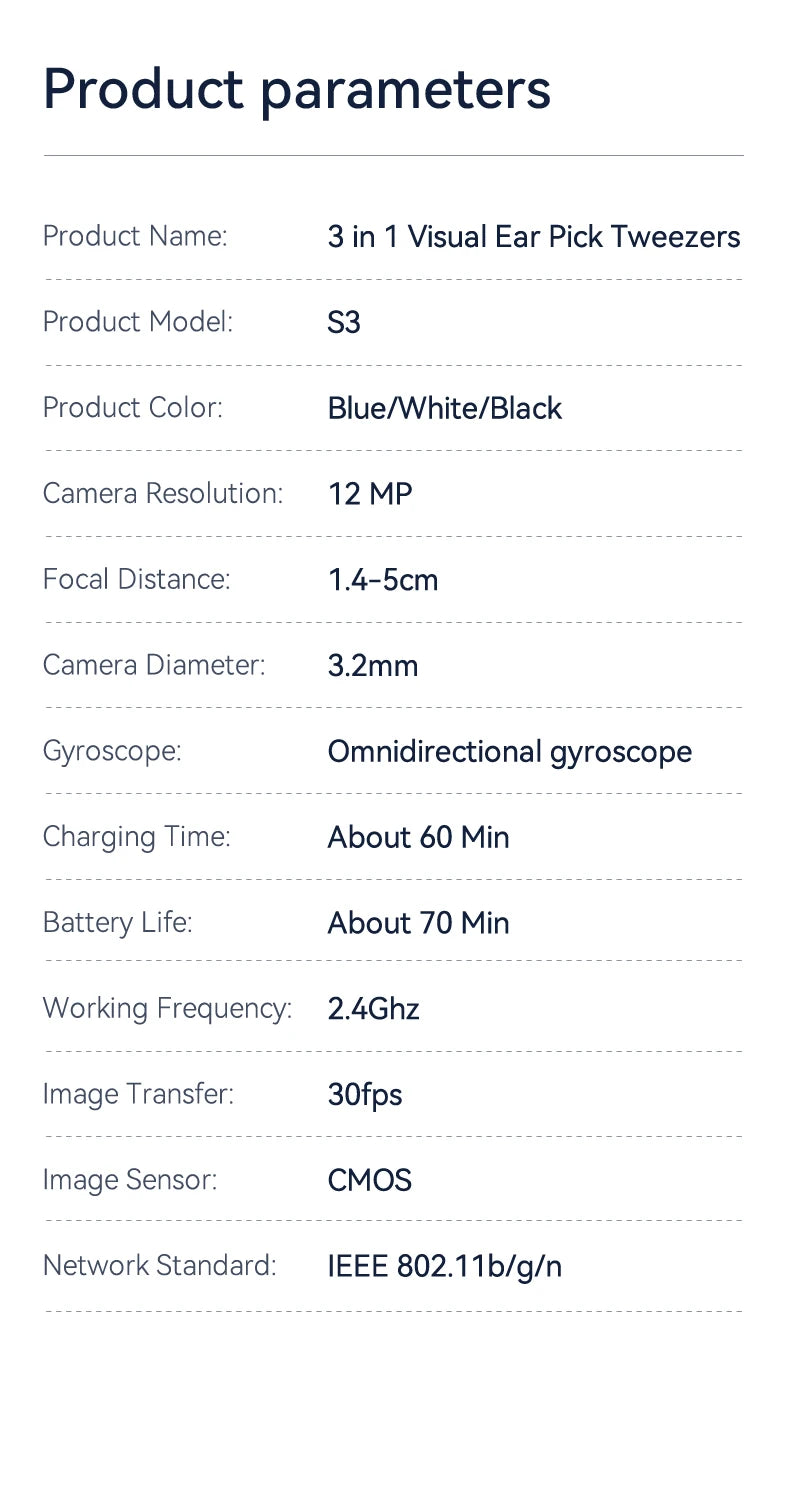 12 Million HD Pixels Camera: With its ultra-clear 12-megapixel lens, you can see every detail inside the ear canal. The 3.2mm diameter lens captures images with a depth of field up to 50mm and a focal distance between 1.4–5cm. This precision ensures no wax is missed and reduces the risk of scratching delicate ear tissues.Clampable Robotic Arm with 360° Control: The innovative robotic arm tweezers respond smoothly to hand movements, giving precise control at any angle. This makes it possible to gently clamp and remove even stubborn or hard-to-reach earwax without strain.