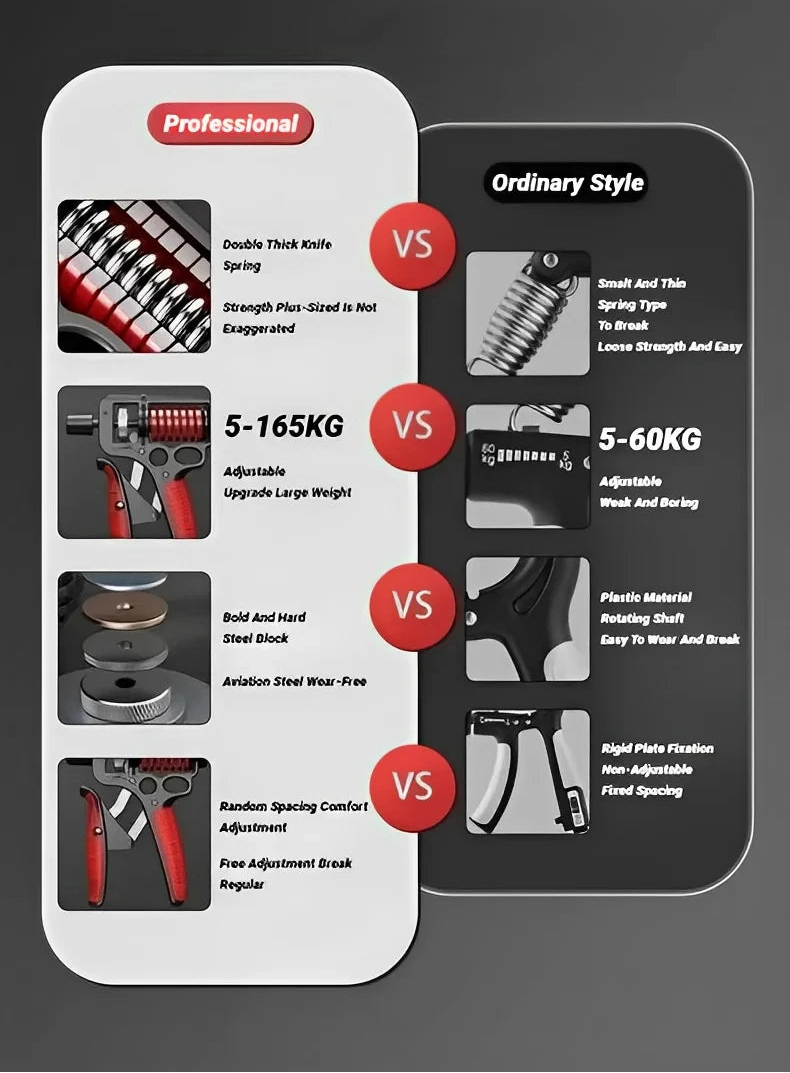 Double-Layer Carbon Steel Spring Technology: The inner and outer bold springs deliver smooth, consistent rebound without lag or sudden snapping. This reduces shock to the hands and wrists, making it safer for aging joints and daily use.
