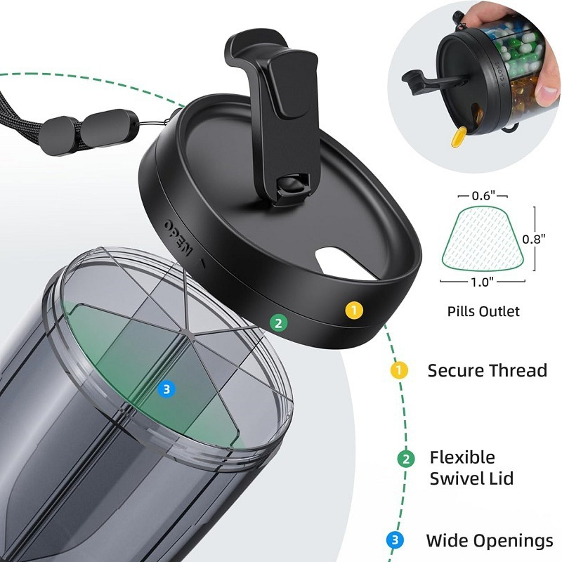 The compartments are designed with less than 1mm spacing from the lid, which prevents pills from spilling into the wrong slot. That means no accidental mixing and no wasted pills. Each vitamin, tablet, or capsule stays neatly in its own section, making it easier to take the right supplement at the right time without confusion.