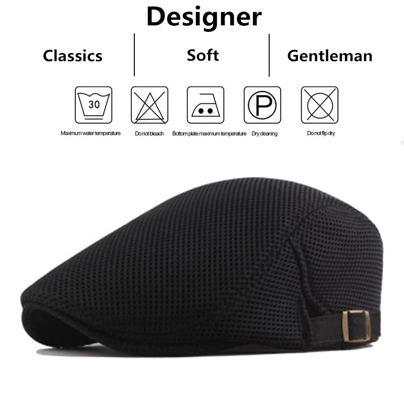 When the weather warms up, most hats get hot fast. This ventilated mesh flat cap is designed to look sharp while staying comfortable and breathable for spring and summer. It keeps the timeless “British painter / newsboy” style, but upgrades it with an airflow-friendly fabric and an easy adjustment buckle so you can wear it longer without that stuffy, tight feeling.