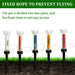 Designed for universal use, these tees are compatible with 1-wood, fairway wood, and irons, and come with fixing pegs to prevent them from being knocked off the ground. Benefit to Your Game: