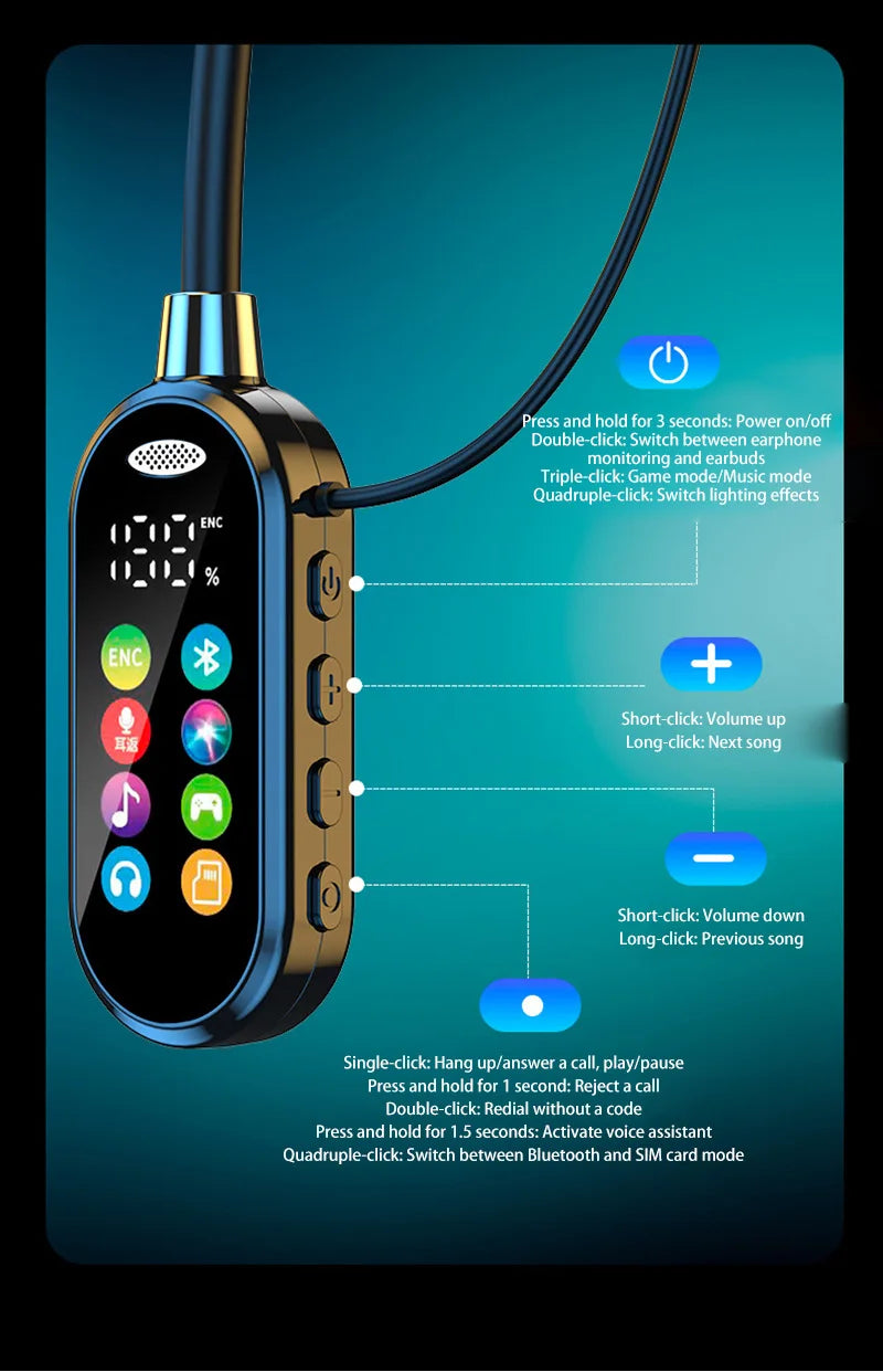 HiFi Sound Color Screen Neckband Magnetic Earphones with Noise Reduction & HD Calls