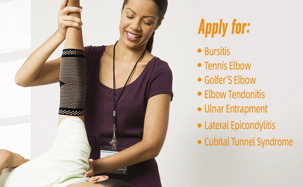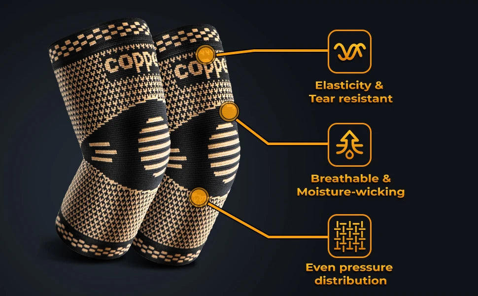 By combining copper infusion, graduated compression, 3D knitting, and anti--slip security, this brace delivers warm, flexible, all-around elbow protection. It helps ease stiffness in the morning, reduces that heavy, throbbing feeling after a long day, and supports every movement when your elbow feels weak or unstable. Slip it on for protection, recovery support, or simple daily comfort