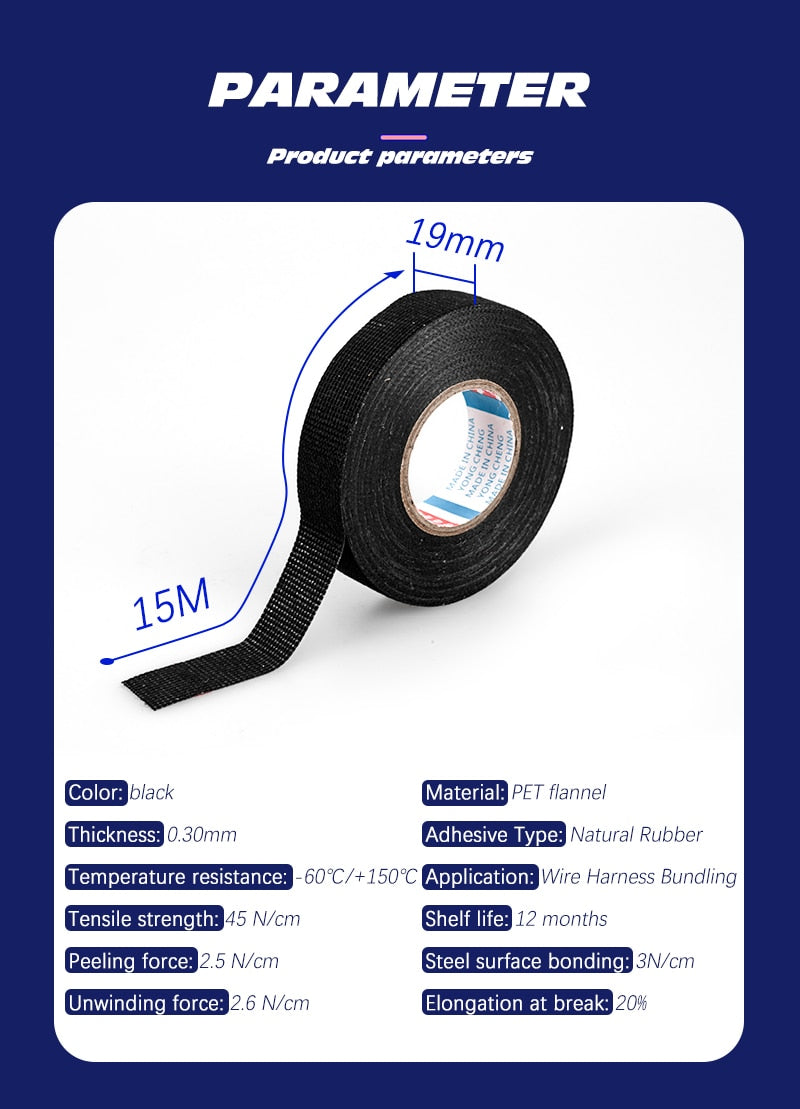 The Flame Retardant & Heat Resistant Tape is primarily used in cable kits for vehicle internal winding harnesses. It's high-temperature resistance and flame-retardant properties make it ideal for securing and protecting cables in automotive applications. It provides a reliable barrier against heat and fire, ensuring the safety and longevity of the internal wiring systems.