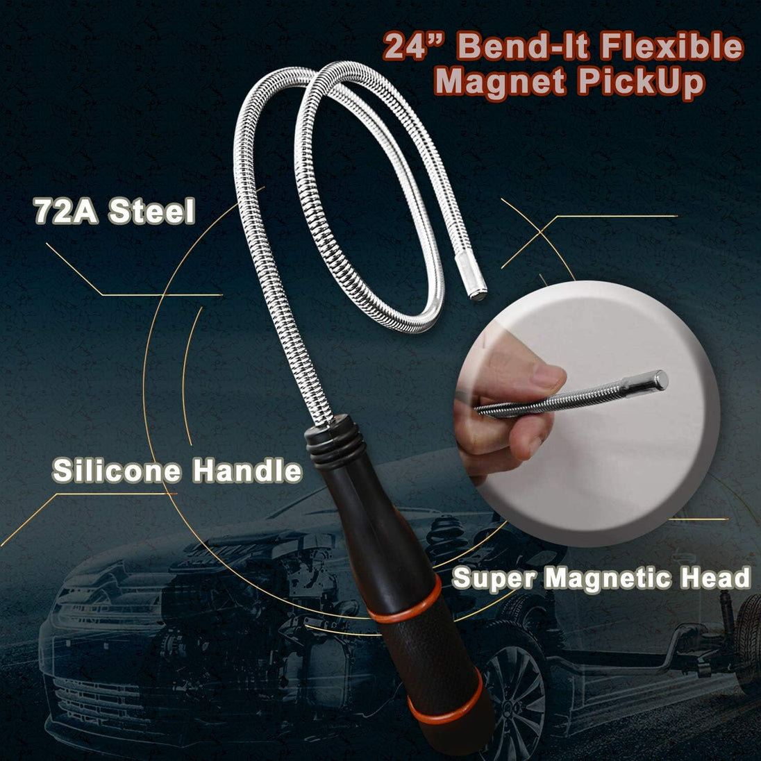 Flexible & Narrow Magnetic Head: The slim magnetic head easily fits into tight spaces such as sink drains, under appliances, or between car seats. The long, bendable stainless steel shaft allows you to guide the magnet exactly where you need it, reducing the need to twist or stretch your body.