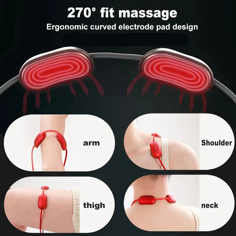 The curved pads hug the cervical area and can also be moved to the shoulder, arm or thigh whenever other muscles need attention. In just 15 minutes you enjoy a full clinic-style session without creams, pills or bulky equipment.