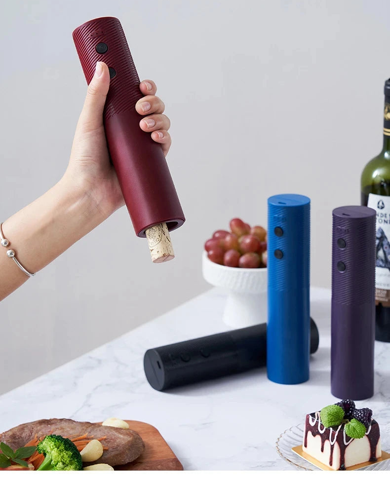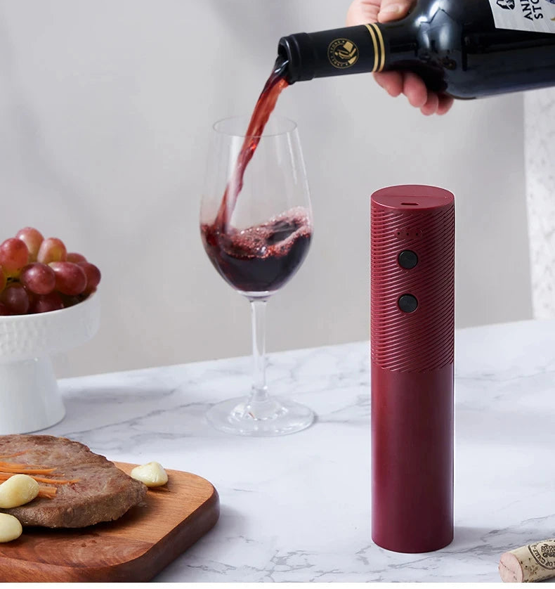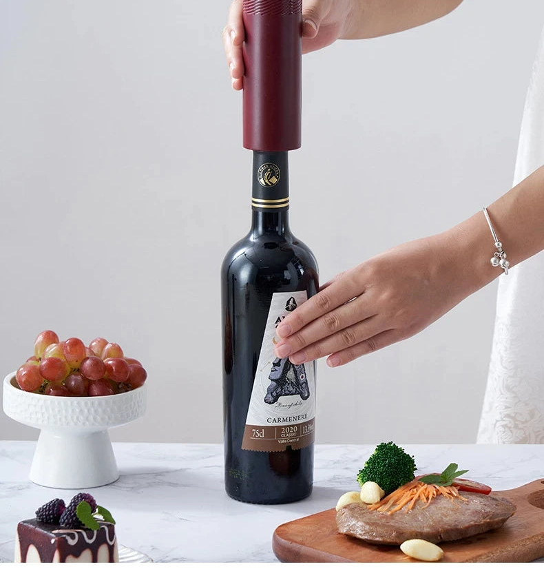 Enjoy wine the easy, effortless way. This electric wine bottle opener is designed to remove corks smoothly with just one touch, eliminating strain on the hands and wrists. With a powerful motor, fast 6-second opening, and simple one-button control, it offers a stress-free experience that makes opening a bottle comfortable, safe, and enjoyable especially for those who value ease of use and independence.