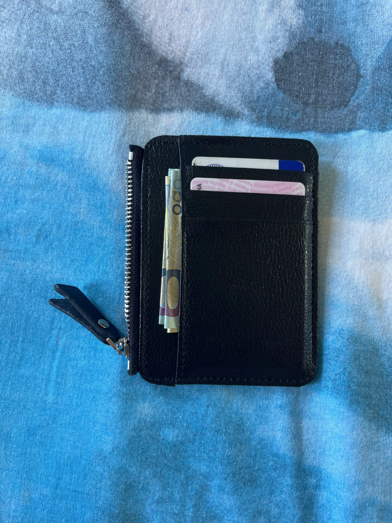 With its secure zipper pocket for coins and cash, dedicated card slots for quick access, and a lightweight design that slips comfortably into any pocket, it’s the perfect everyday companion. Built from durable materials, it will stand the test of time — just like the things that matter most in life.