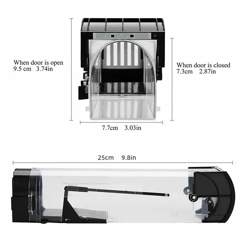 This humane reusable mouse trap offers a safe, clean, and responsible way to manage unwanted rodents in your home or garden. Designed with clear, durable materials and a secure self-locking mechanism, it allows for easy monitoring and reliable capture without the mess or risks of poisons and glue traps.