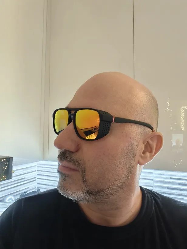 The first thing you notice is the unique design concept. It blends a sporty performance shape with a retro steampunk-inspired look — like vintage racing eyewear with a modern edge. The bold, squared shield profile gives you that distinctive “statement” style, while the side-guard structure adds a rugged, industrial feel .