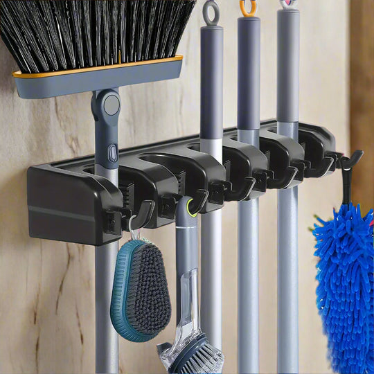 Multi-Functional Wall Mounted Mop Holder for 3/4/5 Brooms