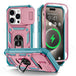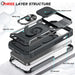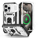 Featuring a smart sliding camera cover, card slot, rotating kickstand ring, and support for car mount magnetic stands, this case combines practicality with military-grade armor protection.