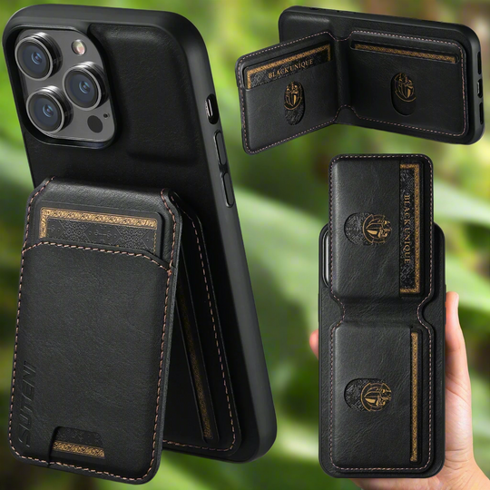 Magnetic 3in1 Leather Wallet with Built-In Kickstand iPhone Case
