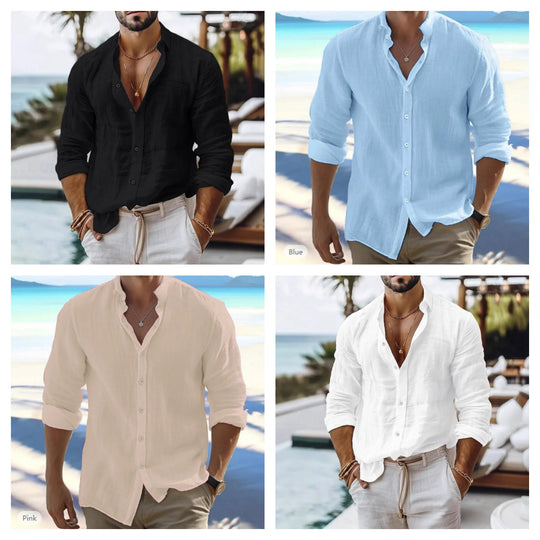 Men’s Lightweight Relaxed Fit Cotton Linen Long Sleeve Summer Shirt