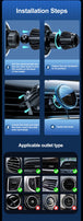 Fast Wireless Charging: Stay connected and powered up on the go with our Fast Wireless Charging Car Phone Holder. With high power and automatic adsorption, your device will not only stay securely in place but also charge rapidly. No more fumbling with cords or struggling to find your charger; this holder offers a seamless charging experience.