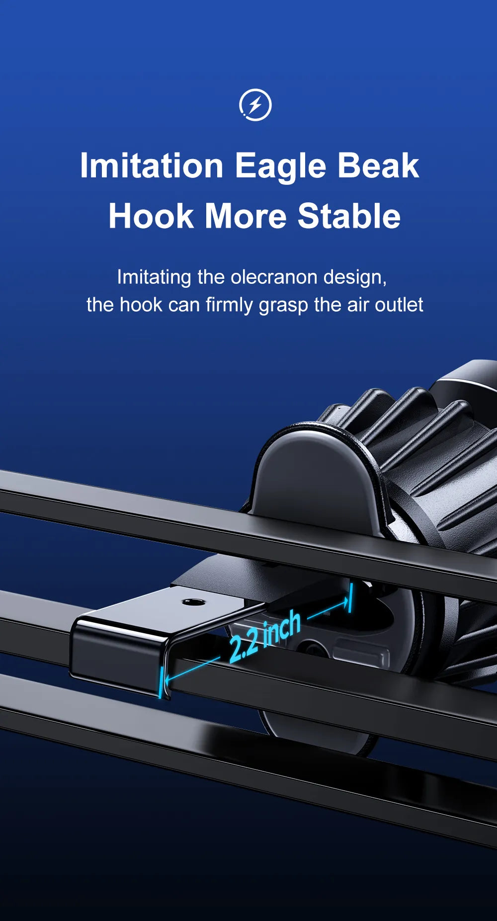 Effortless Installation: Simplicity meets efficiency with our Joyroom Car Phone Holder. In just four easy steps, you can have it securely mounted in your vehicle. The new upgraded air vent hook and imitation eagle beak hook ensure a stable and secure fit on your car's air vent, preventing any unwanted wobbling or slipping.