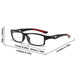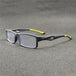 The modern rectangular full-rim frame provides a clean, contemporary look that suits many face shapes and personal styles.