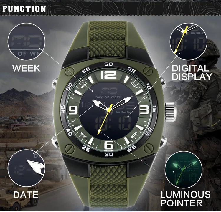 - Hour,minute,second,date,month,week,alarm,stop watch,12/24 hours and back light functions
