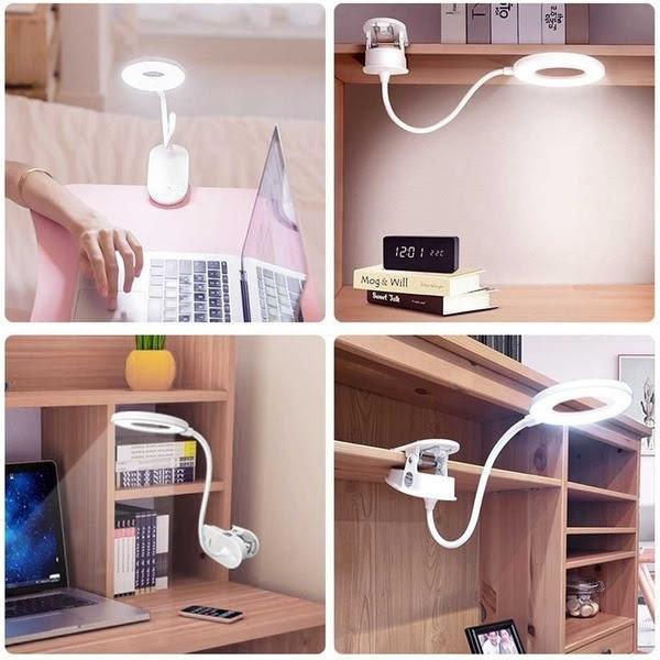 The incredible features of this lamp make it extremely practical. Not only that Its sophisticated ring design conveys natural lighting but it also has a built-in touch control that allows you to choose between 3 different levels of light intensity. Its 2 in 1 design allows it to stand or be clipped to any object. It's portable and flexible so you can rotate it by 360 degrees according to your needs.